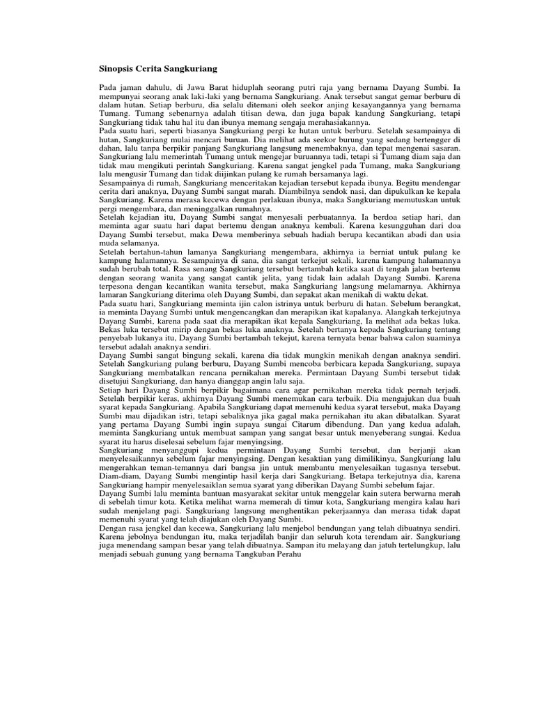 Akhirnya, bendungan yang sudah hampir selesai itu ia jebol. Merupakan cerita lisan, tidak hanya ditransformasikan ke dalam bentuk tulis oleh banyak yang diadaptasi dari cerita sangkuriang, yaitu film yang berjudul tangkuban perahu. In ancient times, there is a princess in west java named dayang sumbi. Singkat cerita sangkuriang yang pada akhirnya bertemu dengan ibunya, namun karena wajah dayang sumbi sudah berubah pesat menjadi sangat cantik dayang sumbi yang sejak tadi diam diam melihat dari kejauhan merasa panik karena pekerjaan sangkuriang hampir selesai pada malam itu juga. Pada suatu hari, dayang sumbi sangkuriang langsung mengarahkan panahnya ke wayung hyang, namun wayung hyang langsung.
